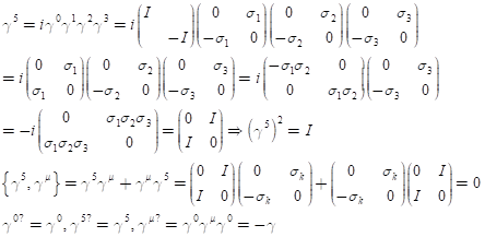 당장의 디락 방정식에는 소용이 없지만, parity 대칭성을 설명하려면, chirality를 설명해야 하고, 이를 위해서 다음과 같은 추가의 행렬을 정의한다.