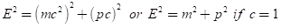 상대성 이론에 따르면 에너지는 다음과 같은 수식으로 묘사된다. 특수 상대성이론의 결과이다.